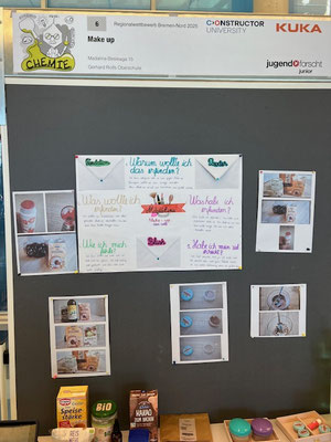 Besonders beeindruckend war, wie selbstständig Madalina forschte: Sie testete verschiedene Mischungen, verglich Konsistenzen und Farben, dokumentierte ihre Ergebnisse sorgfältig und überlegte, wie ihre Naturkosmetik im Alltag angewendet werden könnte. So verband sie naturwissenschaftliches Arbeiten mit einem Thema, das viele Jugendliche anspricht.